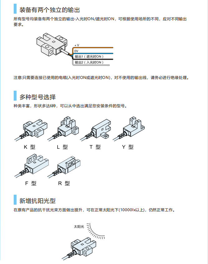 产品简介:装备有两个独立的输出,多种型号选择,新增抗阳光型