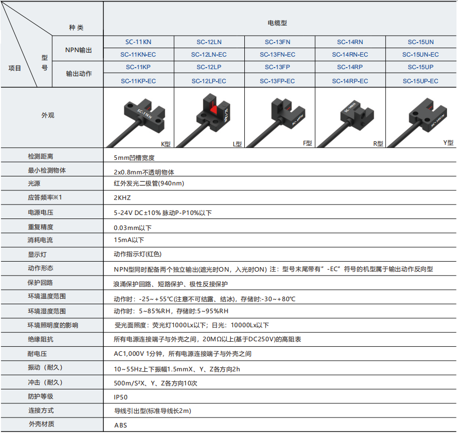 产品名称:超小型槽型光电传感器