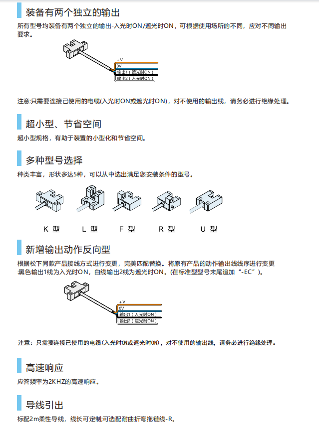 产品简介:装备有两个独立的输出,超小型、节省空间,新增输出动作反向型