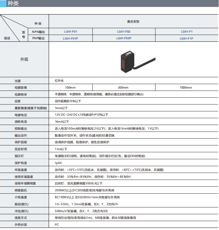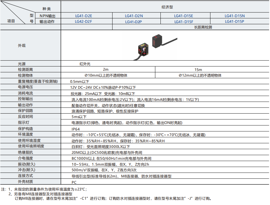 产品简介:可检测细小物体,检测精度高,经典方型外观,25.4mm标准安装孔距,性能稳定,安装方便。