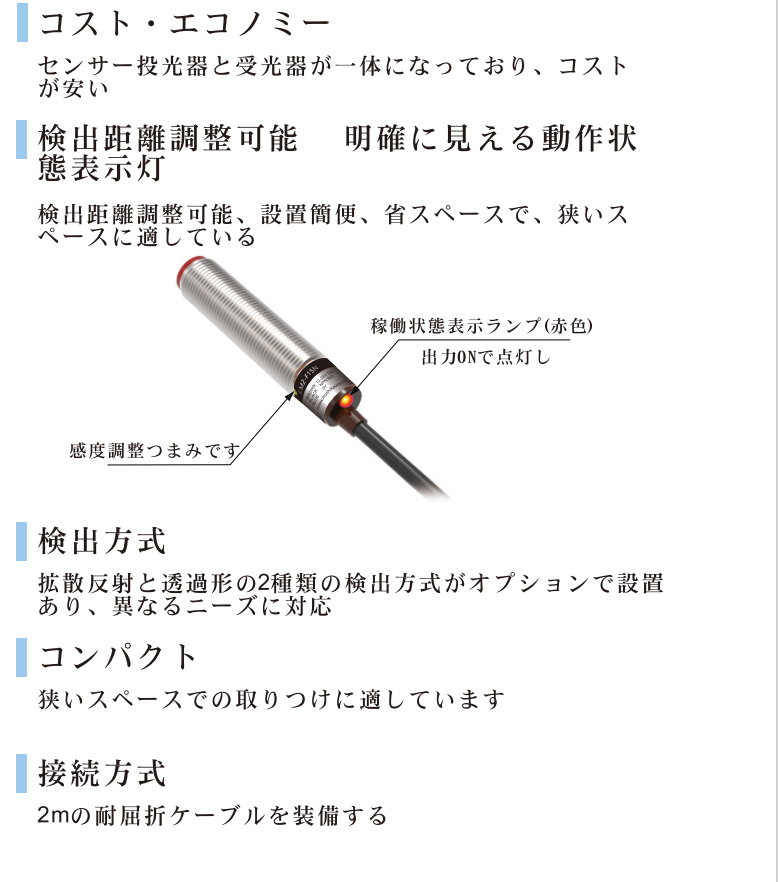 产品简介:成本经济,检测距离可调、清晰可见的工作状态指示灯,体积小巧