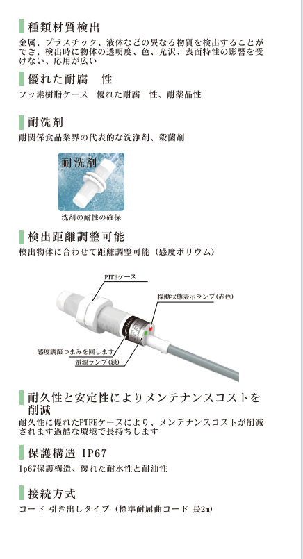 产品简介:可以检测金属,塑料,液体等不同物质,检测时不受物体透明度、颜色、光泽度或表面特性的影响,应用广泛。