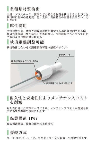 产品简介:可以检测金属,塑料,液体等不同物质,检测时不受物体透明度、颜色、光泽度或表面特性的影响,应用广泛。