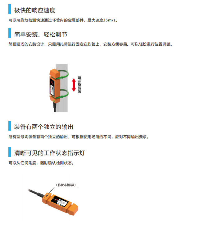 产品简介:可以可靠地检测快速通过环管内的金属部件,最大速度35m/s。简单安装、轻松调节。