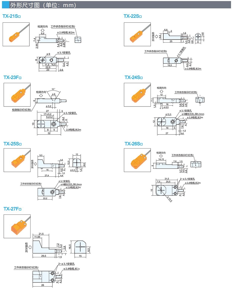 产品简介:有上端检测/前端检测型,传感器只有指尖大小,不受安装空间的限制