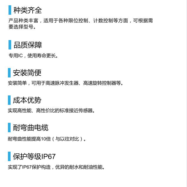 产品简介:产品种类丰富,适用于各种限位控制、计数控制等方面,可根据需要选择型号,