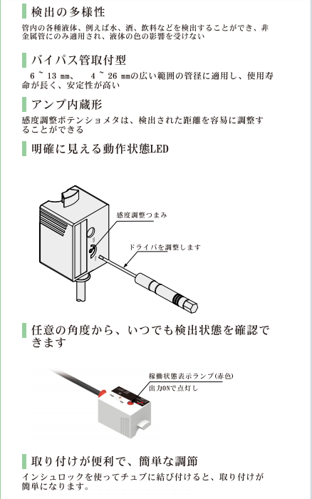 产品简介:可检测管内的各种液体,如水、酒、饮料等,只适用于非金属管,不受液体颜色的影响。