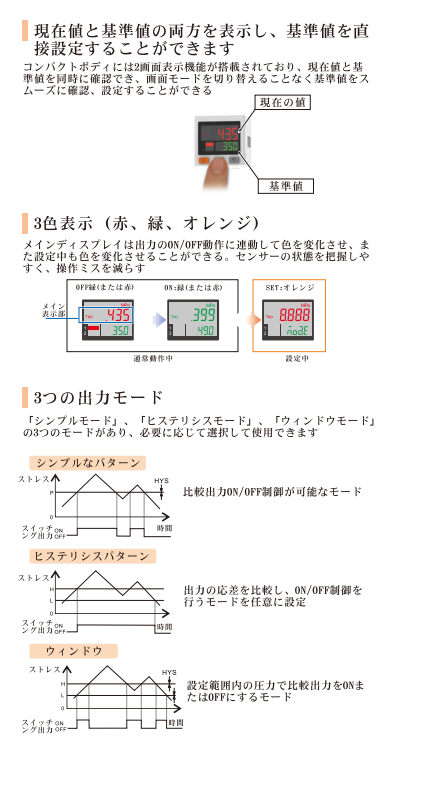 产品简介:可同时显示“当前值”和“基准值”、直接设定基准值,3色显示(红、绿、橙)