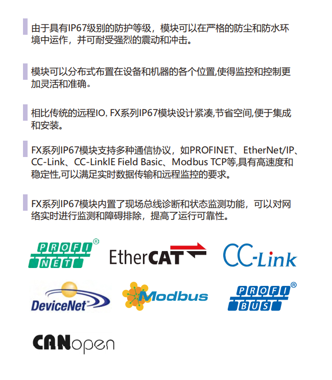 产品简介:由于具有IP67级别的防护等级,模块可以在严格的防尘和防水环境中运作,并可耐受强烈的震动和冲击。